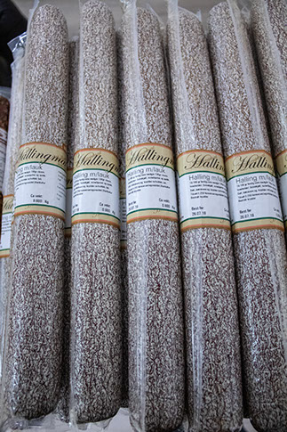 Elg med einerbær, Reinsdyrpølse, Hjortepølse, Hemsedalsmorr,