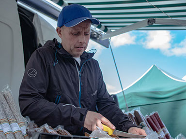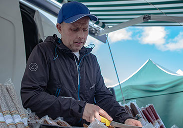 Jon Ivar selger pølser ved Gubbetorget.